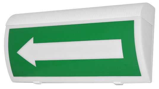 При пожаре оповещатель подсвечивает табло с указателем «СТРЕЛКА ВЛЕВО» мигающим белым светом, информируя окружающих о произошедшем возгорании и необходимости покинуть помещение по направлению в соответствии с указателем.